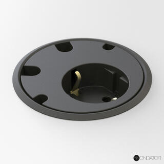Strømledning med 3 strøm og 2 USB-lader (5V, 2,1A Maks). Hulldiameter 60 mm. Med et enkelt trykk på toppen løftes hele uttrekkslisten til åpen stilling.